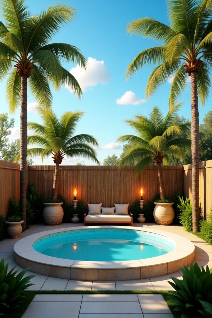 Surrounding your pool with bamboo fencing or reed screening gives your backyard an instant tropical makeover. These materials are lightweight, eco-friendly, and quick to install. They provide privacy while filtering sunlight, creating dappled shade and a serene, island-inspired vibe.