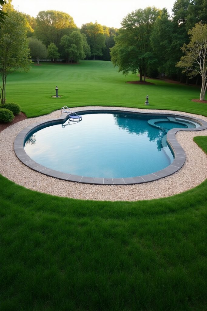 Aside from functionality, this design idea adds a resort-like polish to your pool area. You can use edging stones or metal borders to keep the gravel tidy and contained, or mix in decorative elements like solar lights or low succulents for extra visual appeal. It’s a simple upgrade that dramatically boosts your poolside ambiance with minimal maintenance.