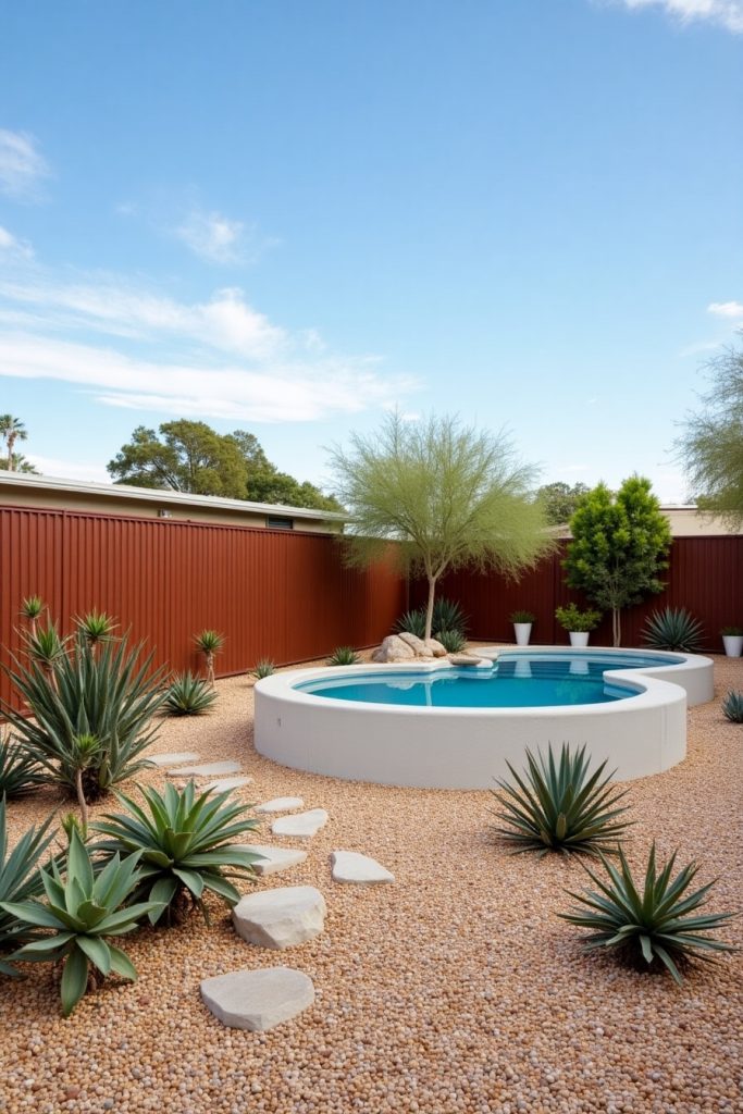 This landscaping idea thrives in hot, sunny locations and requires little upkeep, making it ideal for pool areas. The contrast between the organic pool and the structured rock garden creates visual balance. It’s a perfect blend of nature and design that’s both calming and contemporary.