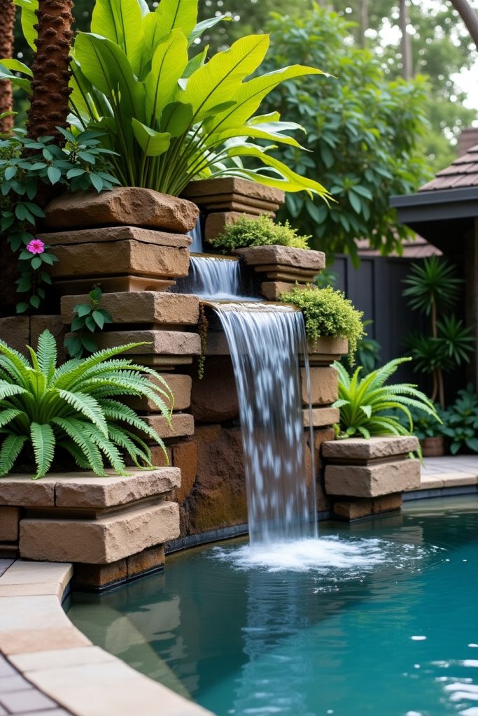 The waterfall can be built with stacked rocks, river stones, or even concrete molds shaped to mimic natural formations. Tuck it beside the pool or incorporate it into a garden bed for a seamless, nature-inspired look. It doubles as a sensory feature for children and a conversation starter for guests.