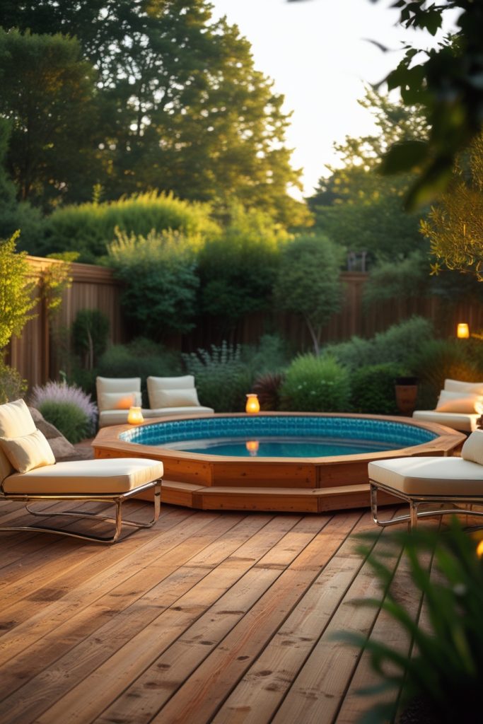 Beyond aesthetics, a wooden deck adds much-needed accessibility and comfort. Swimmers can easily get in and out of the pool without struggling on uneven grass or muddy patches. Plus, the deck surface provides ample space for lounging, drying off, and placing poolside essentials like towels, sunscreen, or drinks. Staining or painting the wood can also match your home’s exterior or garden theme.