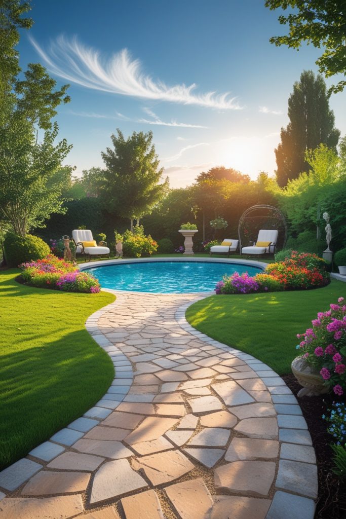 Choose hardy, low-maintenance plants that thrive in sun and heat, such as lavender, coneflowers, or ornamental grasses. You could also incorporate herbs like rosemary or mint for their scent and utility. For visual interest, consider mixing perennials and annuals, or adding trellises for vertical growing. The result is a living frame that elevates your pool’s surroundings.