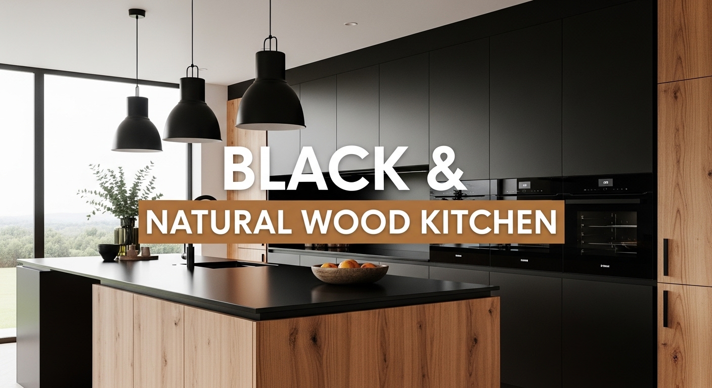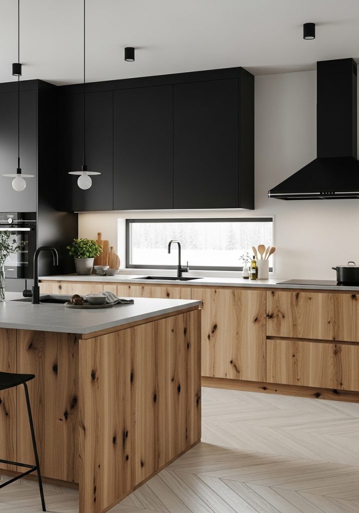 Black and Natural Wood Kitchen A Stunning Blend of Contrast and Warmth