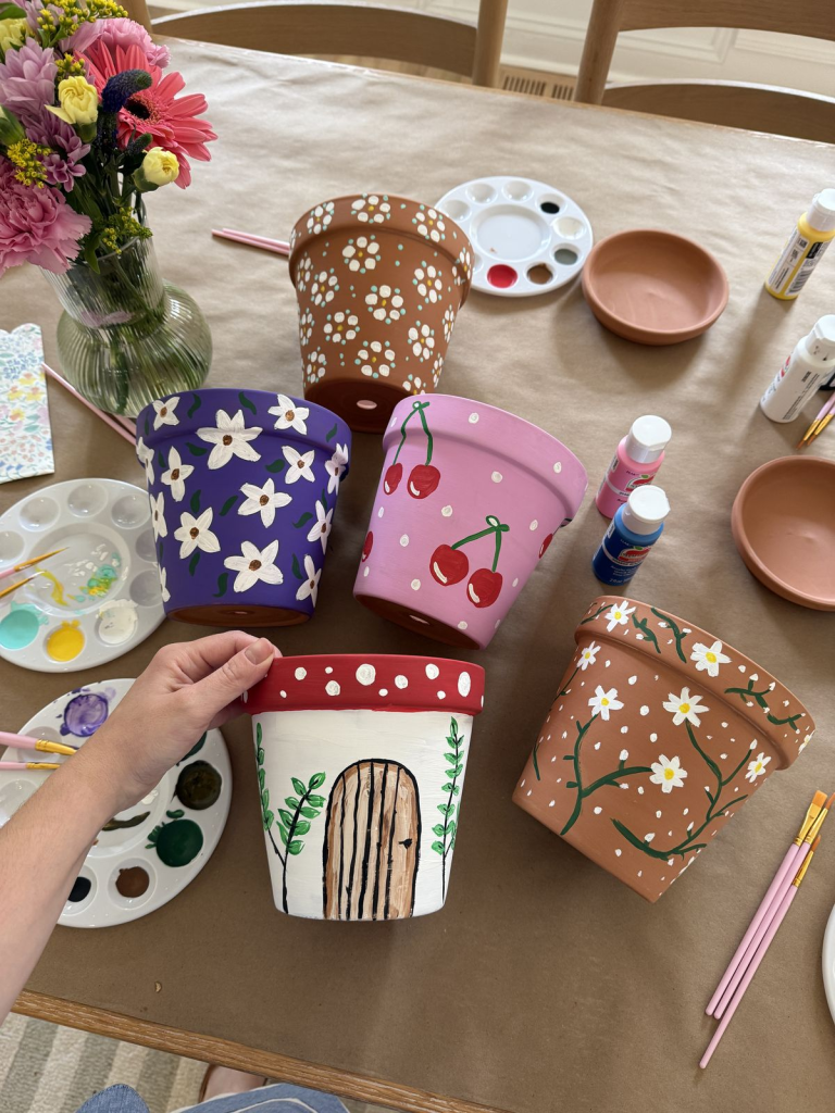 A table full of painted pots looks so cheerful and creative. Every single one ends up completely different, and that’s honestly the fun part.
