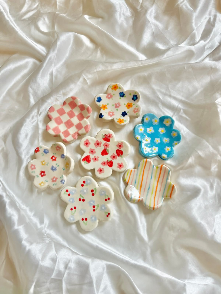 You can shape hearts, flowers, abstract waves, stars, or tiny fruit-inspired trays for jewelry and keys. Once painted, they look like adorable boutique pieces.