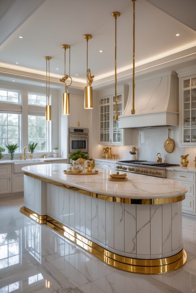 Bring glamor to your build with polished marble countertops, shiny gold hardware, and glossy finishes. Ideal for modern mansions that crave opulence.