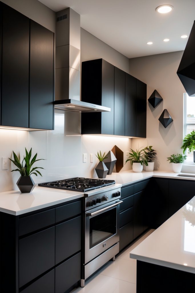 Stick to a black, white, and gray color palette with geometric lines and sleek finishes. Chic and timeless.