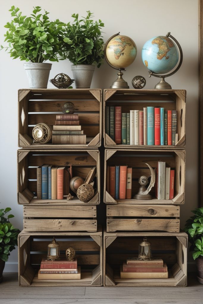The flexibility of crate bookshelves is one of their biggest advantages. You can create low, wide shelves for a living room, or stack them vertically for a narrow storage solution. Securing the crates together with screws or brackets ensures stability, while painting or staining them adds personality and helps them coordinate with your existing décor. Adding wheels to the bottom crates makes the unit mobile, offering the option to move your bookshelf around as needed.