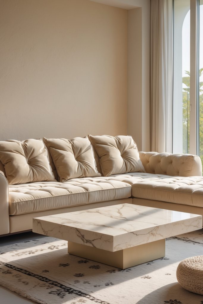 A beige couch living room provides a warm and welcoming atmosphere while allowing for easy styling with different accents.