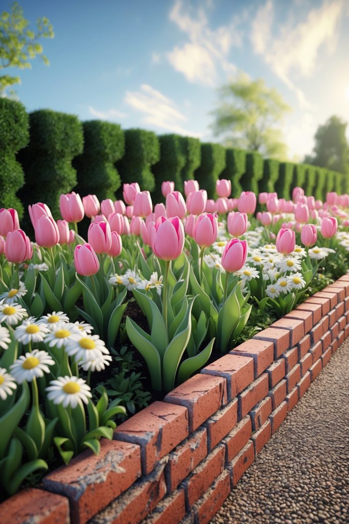 A raised brick flower bed brings timeless charm and structure to your outdoor space. The use of brick adds architectural interest, and its raised form helps to define garden boundaries while improving drainage. It’s an excellent choice for homeowners who want a neater, more formal appearance.