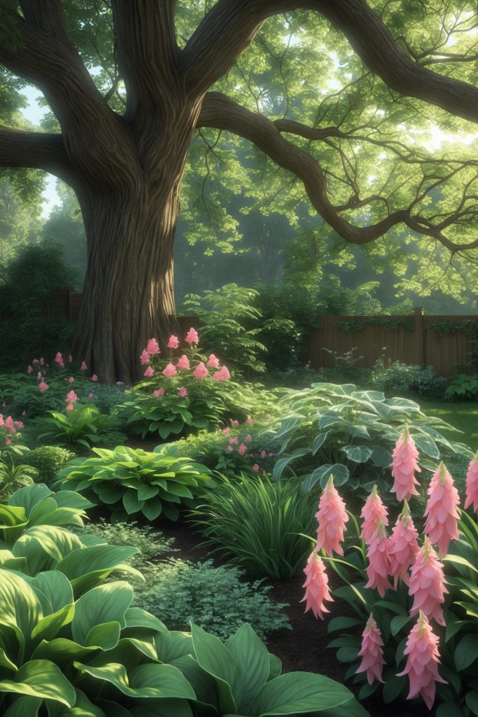Transform dark corners of your yard with a flower bed designed for shade. Choose plants that thrive in low light, such as hostas, ferns, astilbe, and impatiens, and group them according to their height and spread.