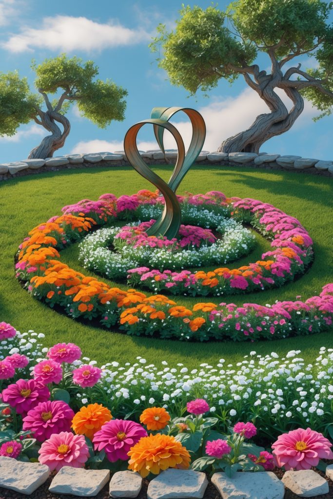 A spiral-shaped flower bed adds a creative twist to your garden layout. Inspired by the Fibonacci sequence, this design is both artistic and space-efficient, making it great for smaller yards or herb gardens.