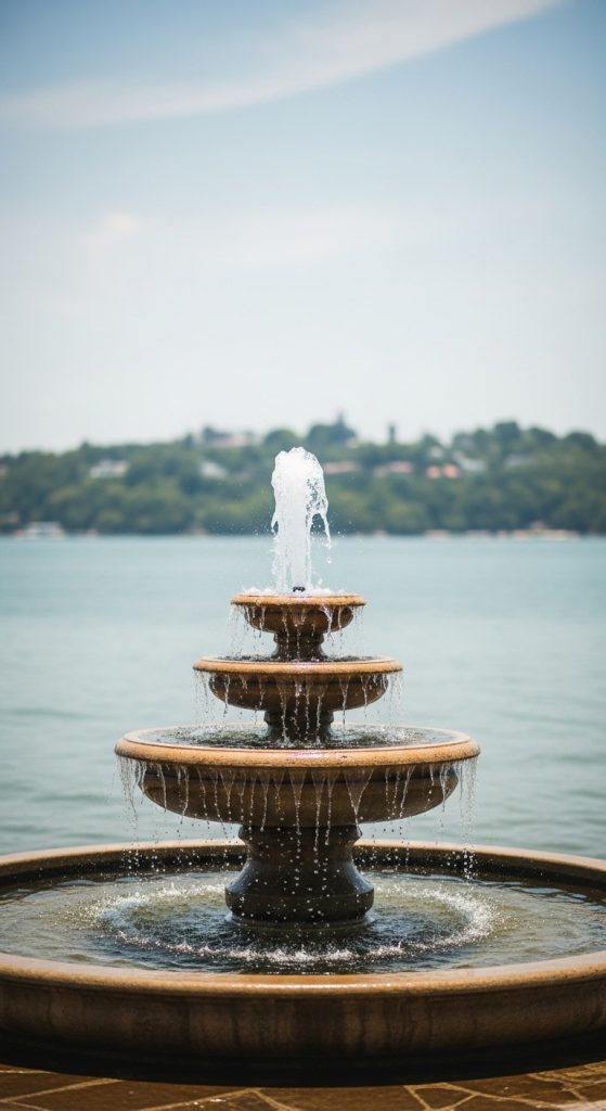Positioning a fountain like this in your garden can create a serene atmosphere. Imagine sitting nearby, enjoying the gentle sound of flowing water while surrounded by nature. It’s a perfect spot for relaxation or even a small gathering with friends.