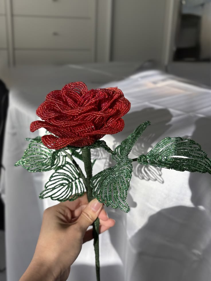 This kind of beaded rose always feels so romantic and timeless. The layered petals create that soft blooming effect that makes the flower look almost real from a distance.