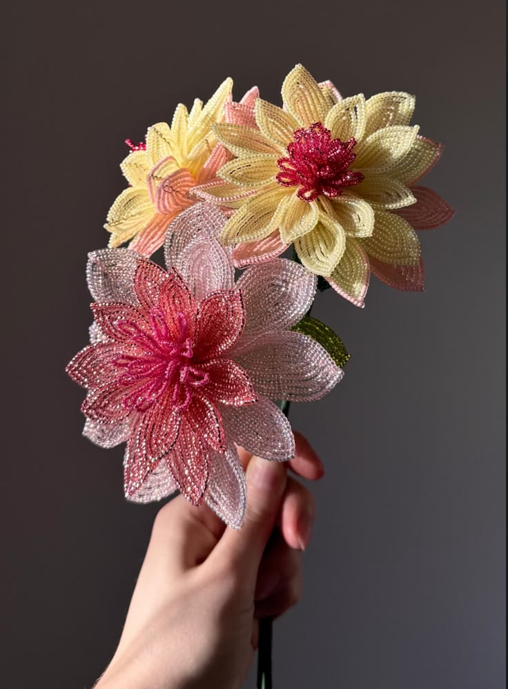 Using slightly translucent beads for the petals can make the flower catch the light in the prettiest way.