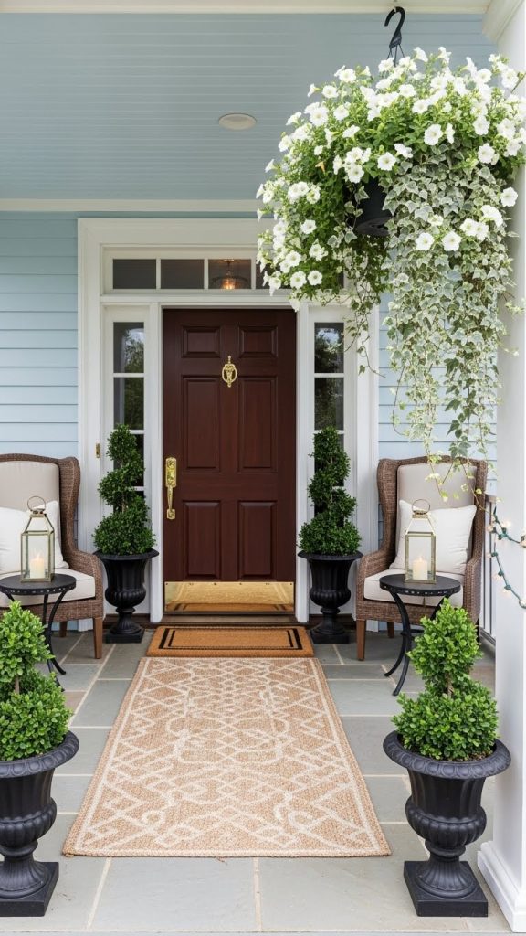 Don’t forget about maintenance! Regular watering and occasional pruning will keep your plants healthy and thriving. A little care goes a long way in maintaining that beautiful front porch look.