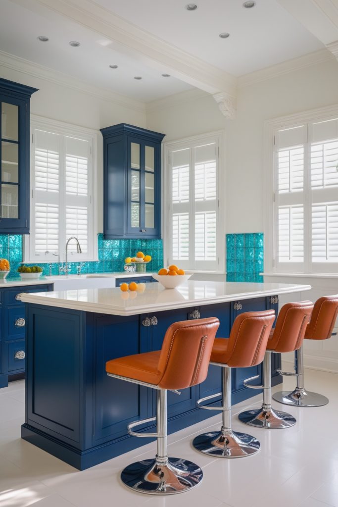 A white and green kitchen provides a fresh and timeless aesthetic. Use white upper cabinets with green lower cabinets to balance brightness and depth.