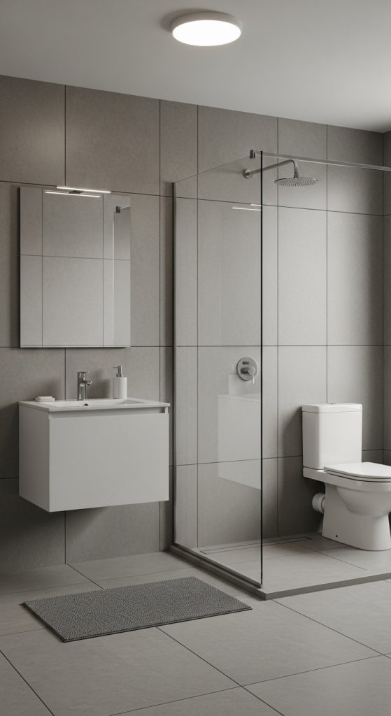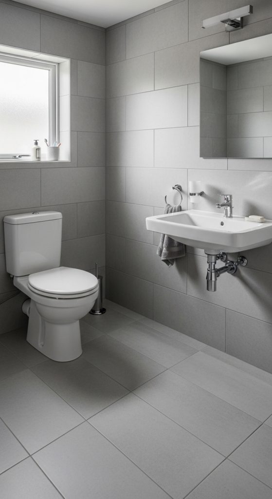 Shared or family bathrooms require durability and ease of cleaning. Matte or lightly textured grey porcelain tiles perform well under frequent use without constant upkeep.