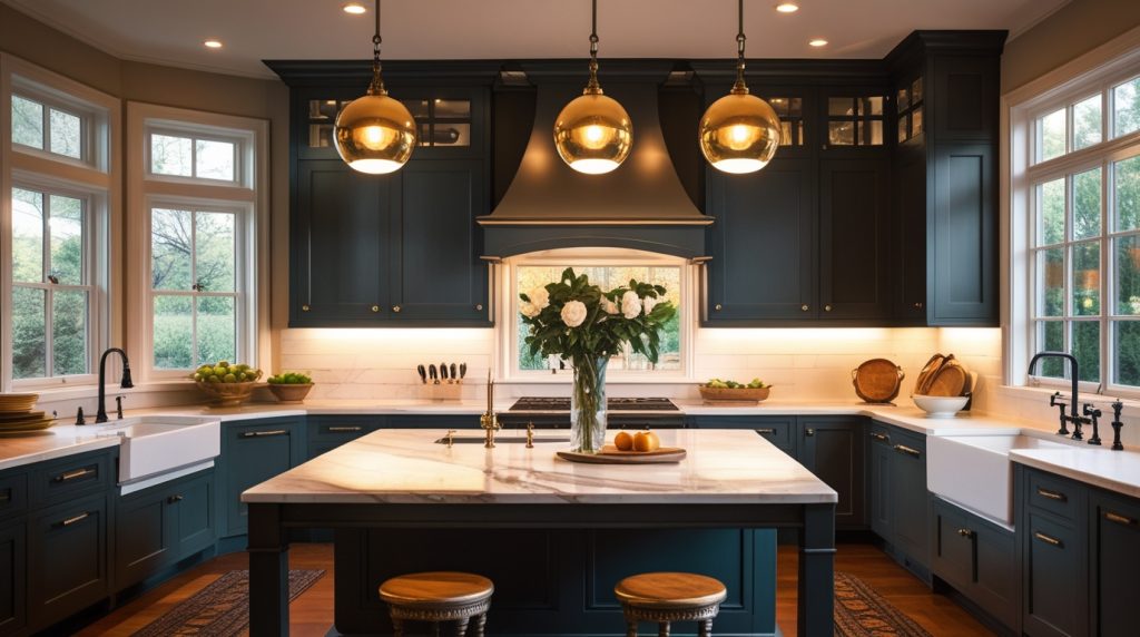 Lighting in a timeless kitchen is about more than just illumination — it’s part of the room’s architecture. A well-lit kitchen layers natural light, task lighting, and ambient light to create depth and warmth.