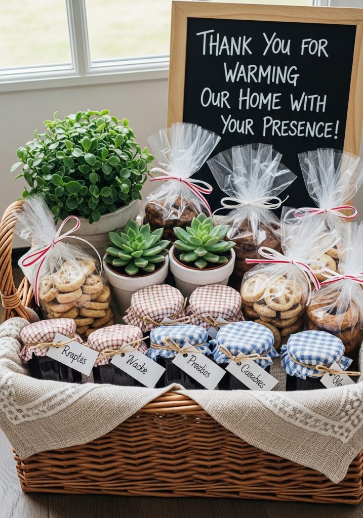 A small token of appreciation goes a long way. Housewarming party favors don’t need to be expensive—think mini succulents, homemade cookies, tiny jars of honey, or a scented candle with a thank-you tag.