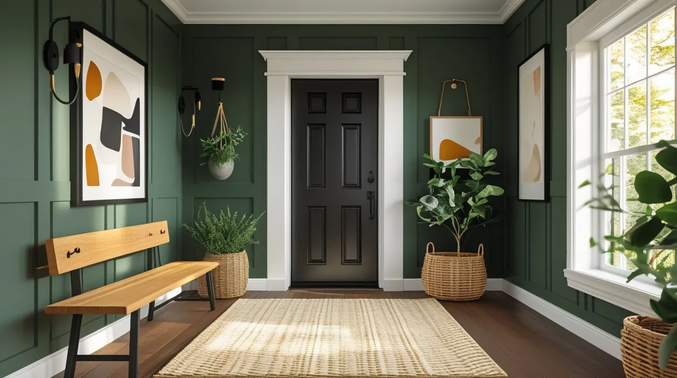 Color plays a powerful role in how your entryway feels — whether you want it to ground, uplift, energize, or soothe. Timeless, welcoming entryways often lean toward earthy neutrals, muted blues, soft greiges, or deep greens for an enveloping, cozy vibe.