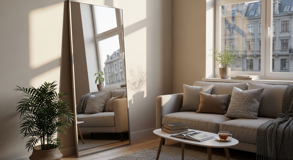 Mirrors reflect natural light and outdoor views, instantly increasing brightness and depth. This creates the illusion of another window.