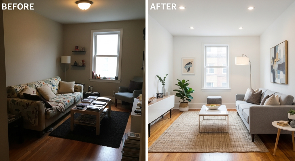 3. Remove one bulky piece of furniture to immediately improve flow and visual breathing room.