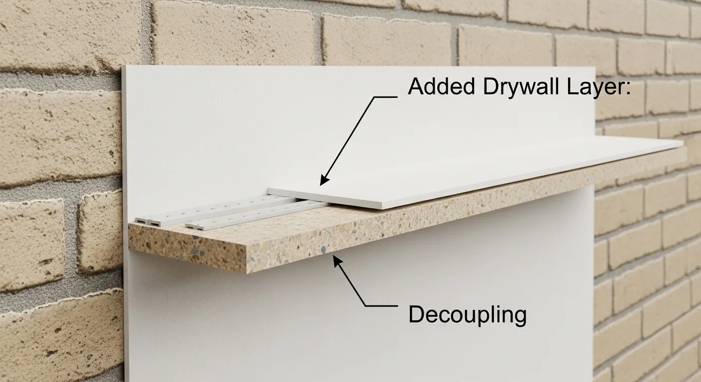 - Decoupling: Creating space or separation between wall layers prevents direct vibration travel.