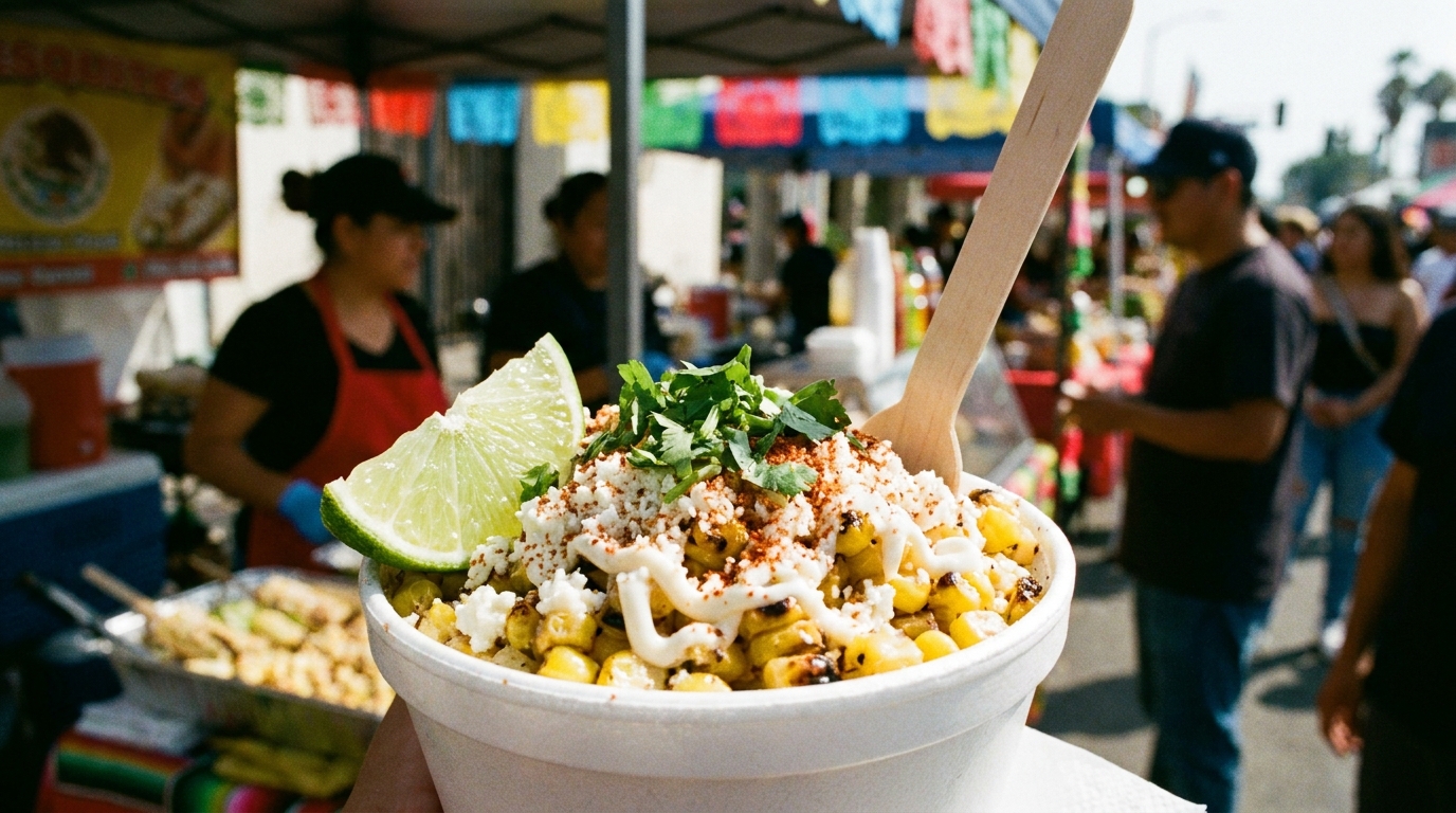 This Mexican street corn in a cup, also known as ‘Elote en vaso’, is a popular street food that brings the flavors of traditional Mexican corn on the cob into a convenient serving. It’s made with sweet corn, creamy mayonnaise, tangy lime, and a sprinkle of cheese, making it a delicious and satisfying snack.