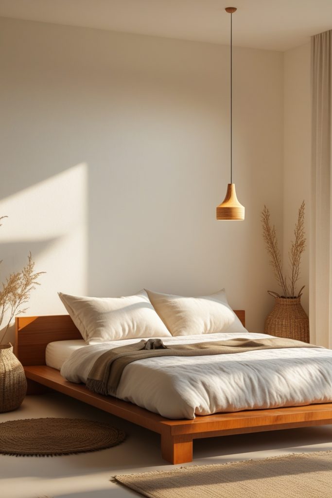 The room exudes a tranquil rhythm. Every object has a purpose, and nothing is excessive. Floors are often left bare or adorned with neutral woven rugs, while lighting is soft and diffused—perfect for winding down. A few well-chosen accessories, like a ceramic vase or bamboo lamp, speak volumes without overwhelming the space.