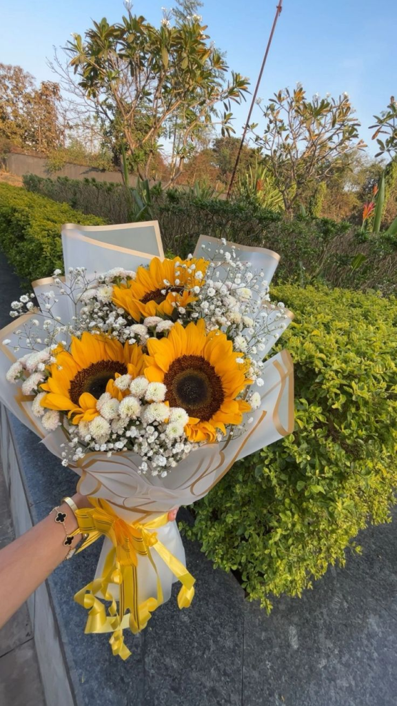 I love pairing sunflowers with white flowers and soft greenery because it balances the bold color so perfectly. The whole bouquet ends up looking cheerful but still elegant.