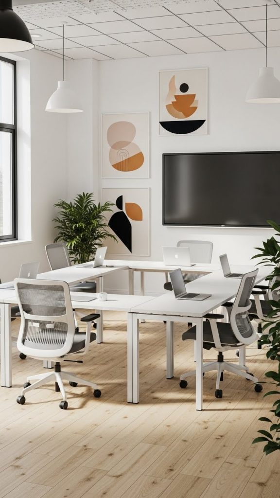 Art on the walls adds personality, giving the office a unique touch. This setup shows how a little creativity can transform a simple room into a productive space. Whether you’re working from home or just need a quiet place to focus, this design can inspire your own home office transformation.