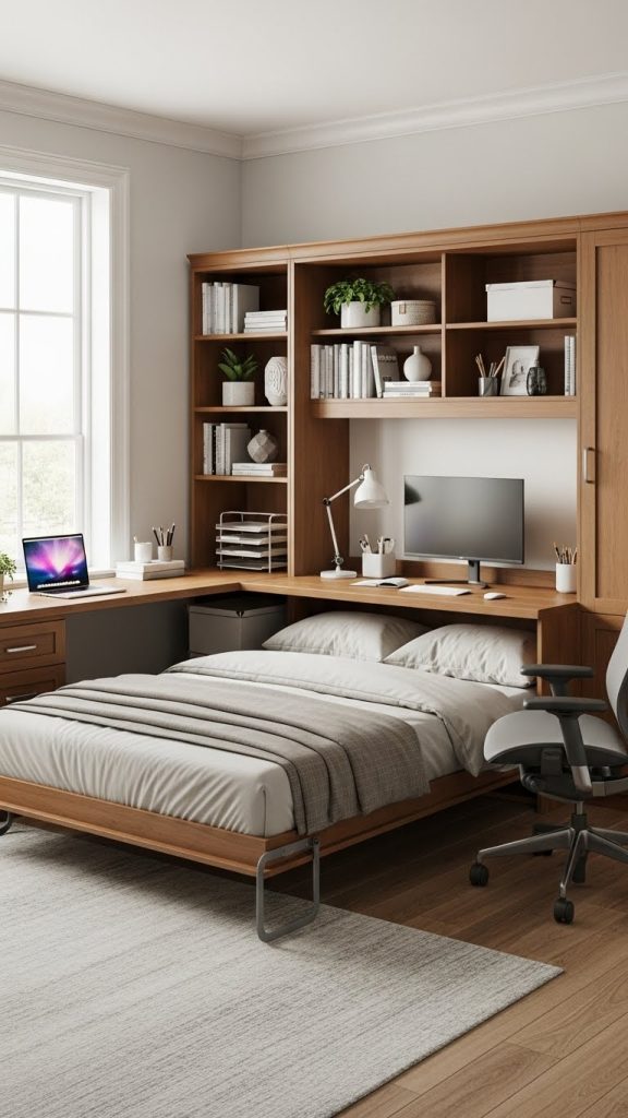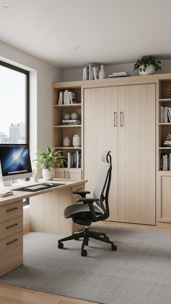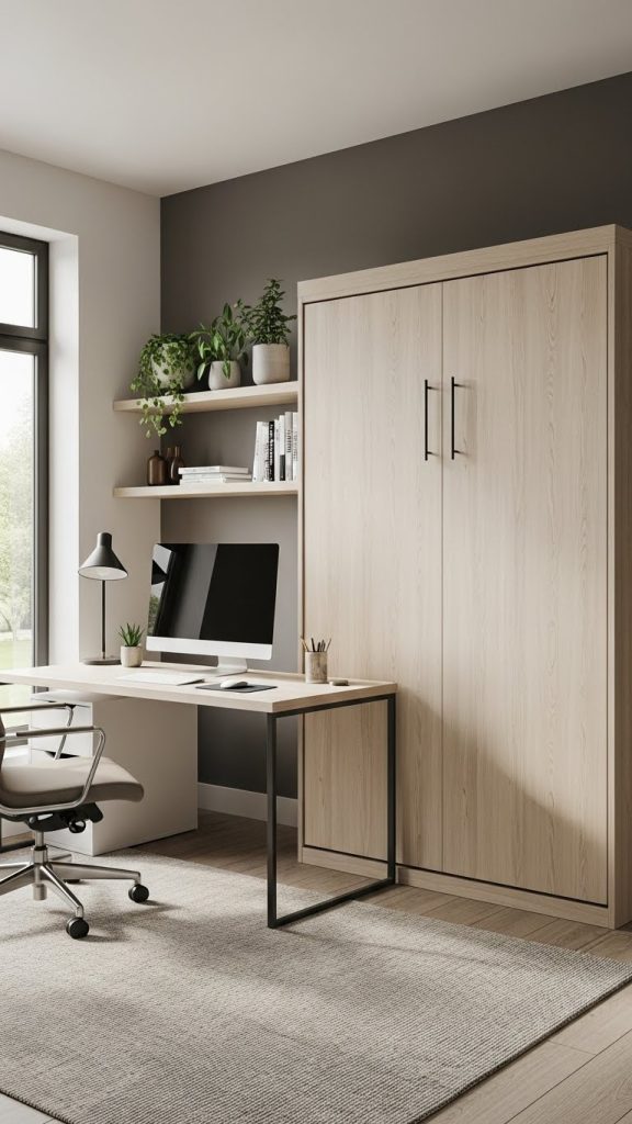 A Murphy bed office is a clever solution that combines workspace and living space, making it perfect for small homes or apartments.