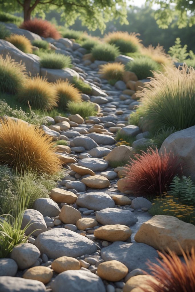 Create a decorative stone-lined channel that mimics a natural streambed to guide rainwater through your yard and prevent erosion.