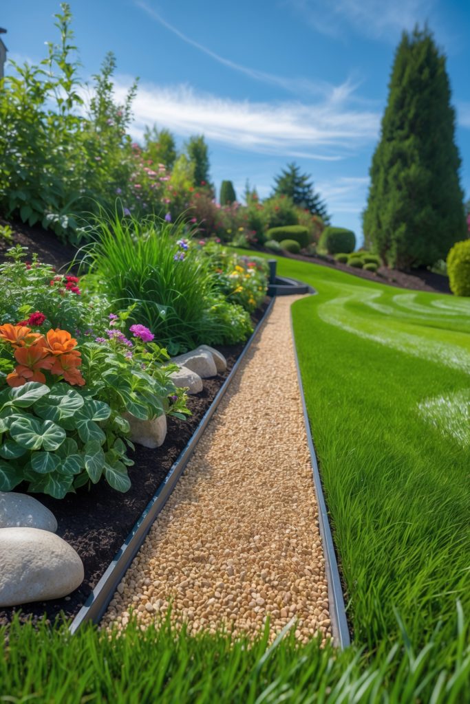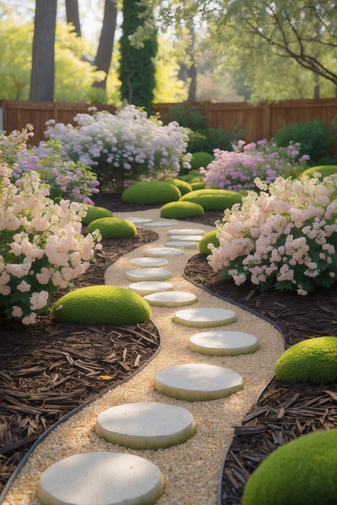 Instead of using solid concrete for walkways, consider installing gravel or mulch paths. These permeable materials allow rainwater to soak into the ground naturally, reducing runoff and promoting healthy soil. Gravel paths offer a more formal appearance and are well-suited for modern or Mediterranean-style gardens, while mulch paths blend beautifully into woodland or cottage landscapes. Both options are affordable, easy to install, and low-maintenance. Add edging to keep the materials contained, and consider incorporating stepping stones or pavers for added texture and usability.