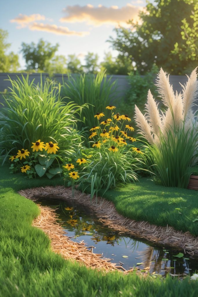 Swap out high-maintenance turfgrass for a native meadow lawn that handles rainfall with ease. Meadows filled with native wildflowers and grasses like little bluestem, bee balm, and goldenrod are excellent at absorbing stormwater while supporting pollinators and reducing the need for mowing or chemical treatments. These lawns thrive with minimal input and provide changing beauty throughout the seasons. You can convert an entire lawn area or start small with a corner meadow bed that expands over time. It’s a fantastic way to add resilience and biodiversity to your landscape.