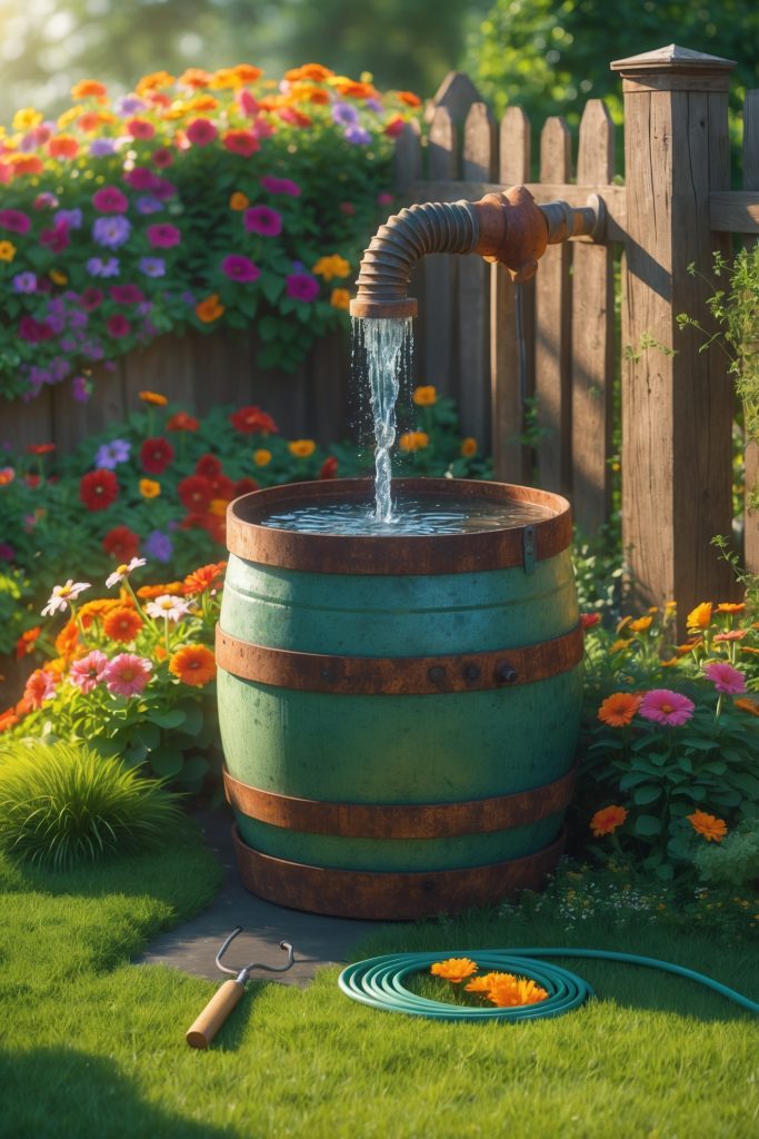Install rain barrels under downspouts to collect roof runoff for garden irrigation. It’s practical and conserves water.