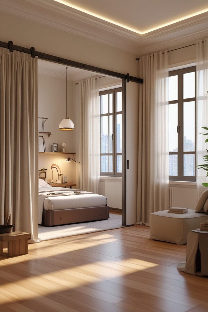 In studio apartments, separating the sleeping area from the rest of the space can make a big difference. A ceiling-mounted curtain is a lightweight, flexible solution that adds privacy without building walls.