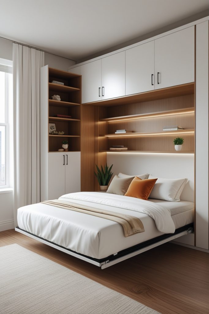 When floor space is limited, go vertical. Install open shelving above eye level for books, plants, and decor. Use tall cabinets or wardrobes that reach the ceiling to maximize storage in the kitchen and bedroom. Consider wall-mounted hooks, magnetic spice racks, or pegboards to keep essentials organized without taking up countertop space. Vertical design not only adds storage but also draws the eye upward, giving the illusion of higher ceilings.