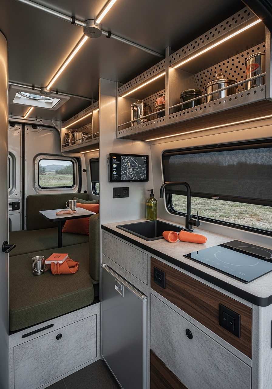 One of the key elements in a minimalist camper is smart storage. Built-in compartments, hidden drawers under benches, and multipurpose furniture allow everything to have its place without overwhelming the space. Think about fold-down tables, nesting stools, or sofas that double as beds. These not only keep the camper practical but also maintain the clean and clutter-free aesthetic that minimalism is known for.
