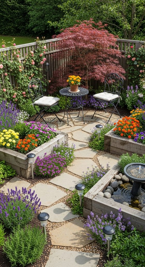 Incorporating a water feature like this can transform your small garden into a tranquil escape. Whether you choose a fountain, a small pond, or even a birdbath, the soothing presence of water can elevate your outdoor space.