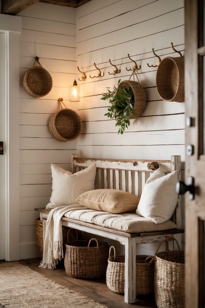 Make a lasting impact by incorporating shiplap into your entryway. Add a bench, hooks, and decor for a functional yet stylish setup.