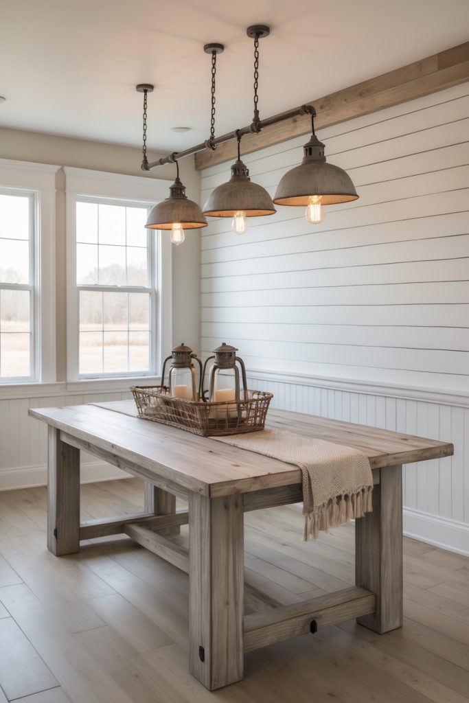Half wall paneling with shiplap offers a refined and understated way to introduce texture without overpowering a room. Covering only the lower portion of the wall, this design creates a cozy, grounded feeling that feels sophisticated yet approachable. It’s a perfect solution for dining rooms and bathrooms where a full wall treatment might feel too heavy.