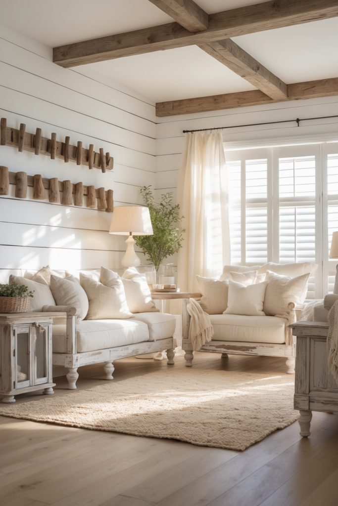 A traditional Farmhouse Shiplap Wall features crisp white panels that brighten a room and add texture. This works well in living rooms, bedrooms, and entryways, complementing rustic and modern decor alike.
