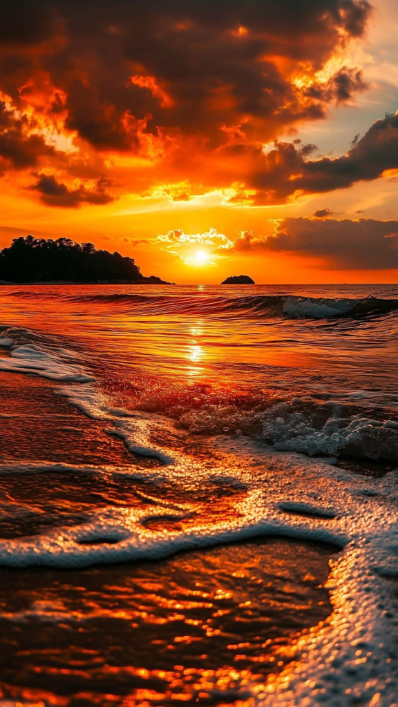 A glowing ocean sunset wallpaper creates a warm and emotional summer feeling that never gets old. The mix of orange, pink, and golden colors feels cozy and peaceful at the same time. It’s perfect for anyone who loves calm evening beach vibes.