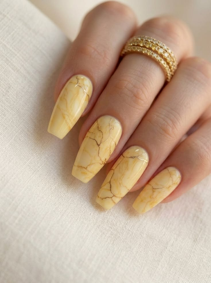 Marble isn’t just for white and grey. By swirling together a deep marigold and a light cream while the polish is still wet, you can create a luxurious, stone-like effect. Each nail will be unique, just like the natural ripples in a piece of fine quartz.