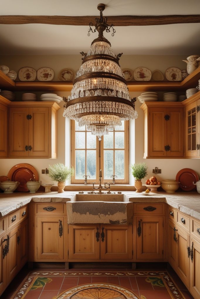 Lighting can completely transform a kitchen’s atmosphere. Statement lighting fixtures, like oversized pendants or vintage chandeliers, bring a sense of character and balance to the room. They serve as functional art—illuminating your workspace while defining your kitchen’s personality.