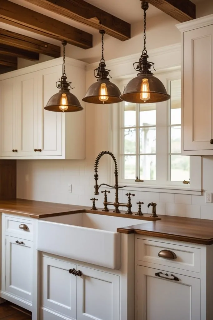 Timeless lighting choices often include aged brass pendants, glass globe lights, or wrought iron lanterns. The key is to select fixtures that complement your cabinetry hardware and overall color palette. Over the island, consider two or three medium-sized pendants rather than a single large one for balanced illumination.