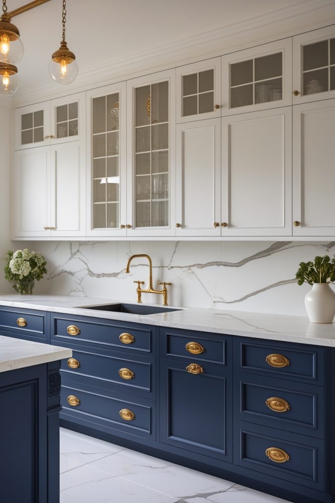 This approach works well in both small and large kitchens. For example, navy or charcoal base cabinets anchor the design, while white or soft gray uppers keep the room feeling open and airy. The interplay of tones creates dimension and can also help highlight architectural features like crown molding or inset panels.