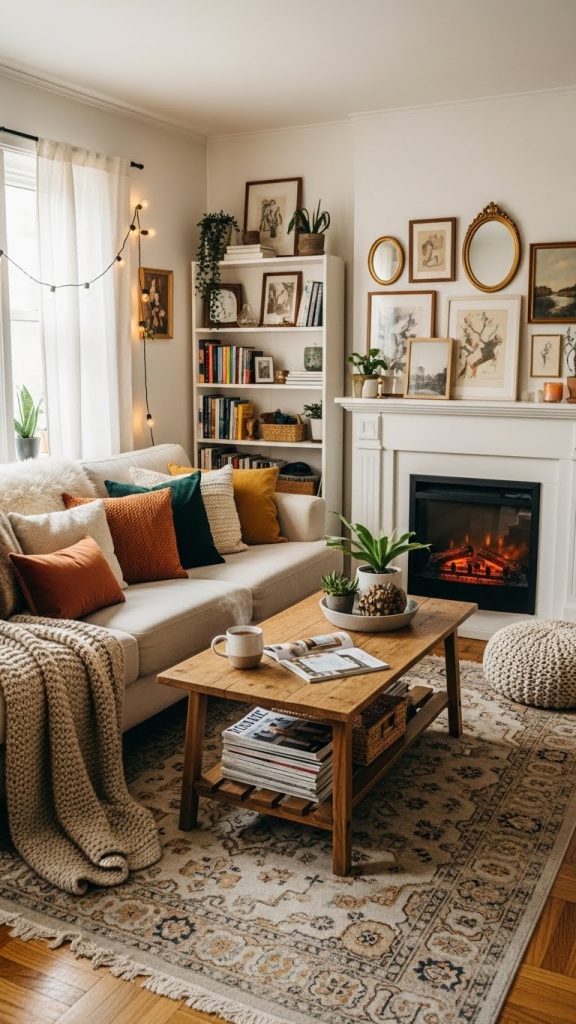 Layering is key in achieving that cozy look. The throw draped over the sofa not only adds texture but also serves as a practical element for chilly evenings. It’s all about combining comfort with style, making your living space feel like a true retreat.